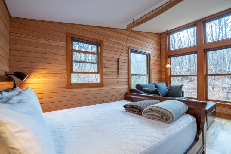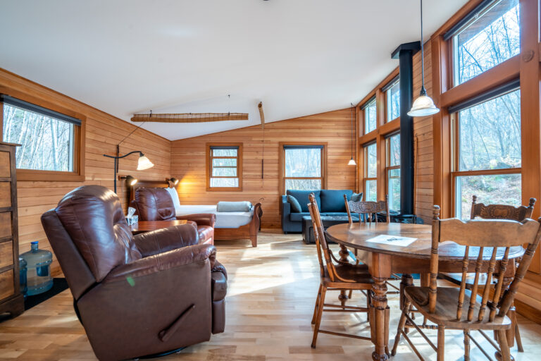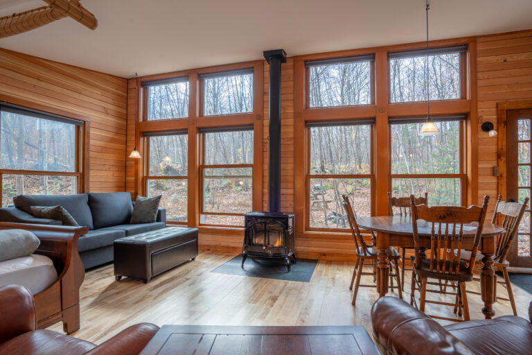 L’appel de la forêt vous habite? Réservez l’Écoasis, même à l’intérieur, vous aurez le sentiment d’être dehors au cœur de la forêt. Ce lieu à air ouverte, confortablement meublé, offre calme et quiétude. Profitez de soirée de détente auprès du son poêle au gaz, sans avoir à vous levez pour ajouter du bois.